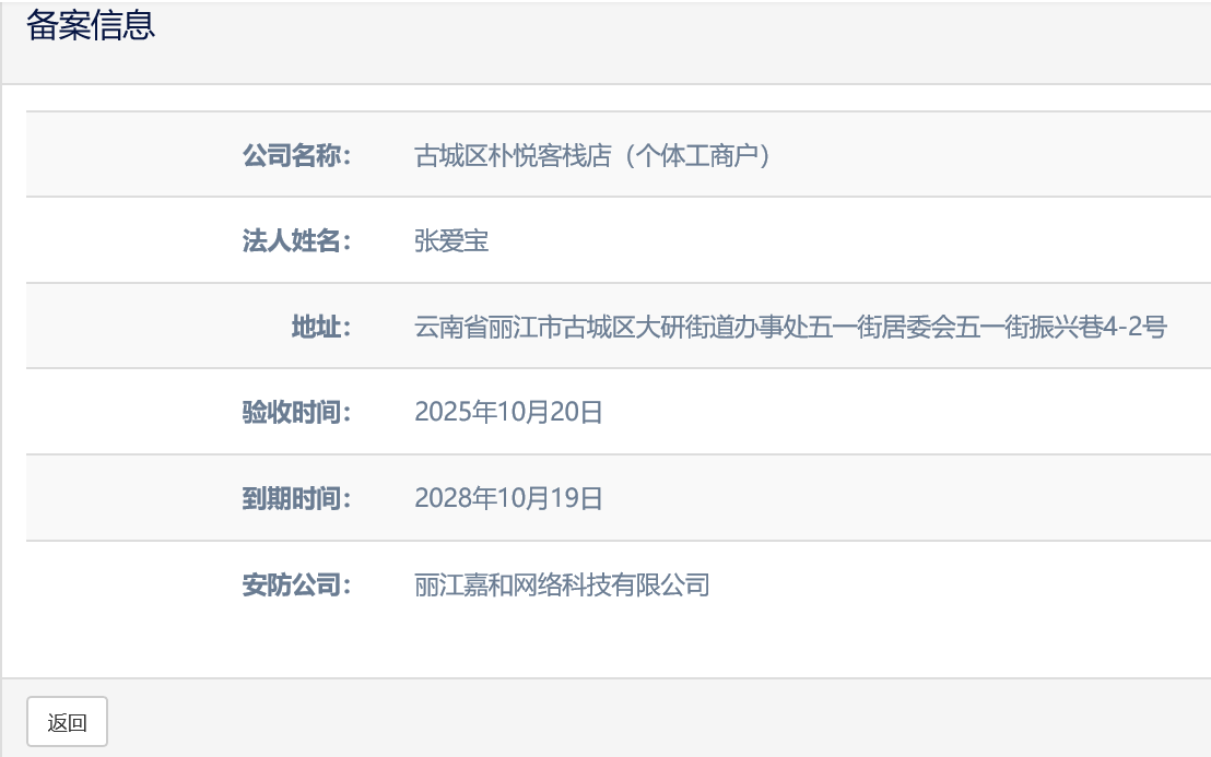 關于古城區納云歸舍民宿店(個體工商戶)電子監控安防合格證下證通知